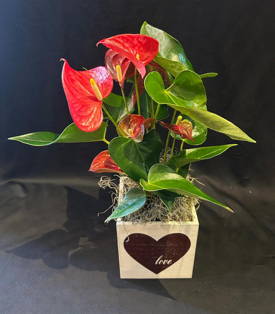 Gorgeous anthuriums are famous for their bright, heart shaped leaves. They are also the world's longest blooming plant, bringing beauty to any space.